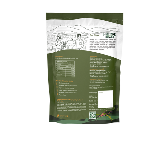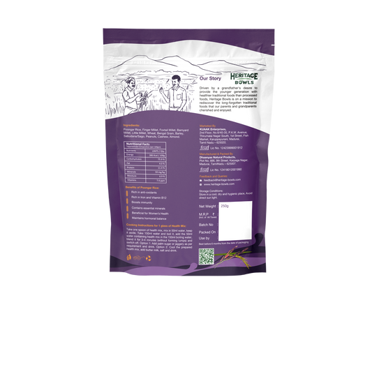 Driven by a vision to extend these health benefits to others seeking nourishing traditional diets, Rajasekar and his family created Heritage Bowls—a brand dedicated to resurrecting forgotten, nutrient-rich foods. The name echoed their ethos, bridging the gap between ancient traditions and the demands of contemporary life.In the whirlwind of today's fast-paced world, we want to expand Rajasekar's learnings as a brand to all interested.