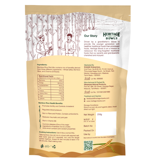 Bamboo Rice Roti Mix (Low GI Healthy Atta) (மூங்கில் அரிசி சப்பாத்தி மாவு) (250 grams per pack)